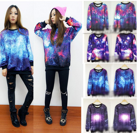 Chic Women's Galaxy Space Starry Print long Sleeve Top Round T Shirt Jumper Top