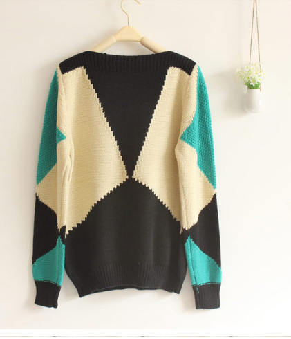 Retro pop style hit color geometric pattern loose sweater